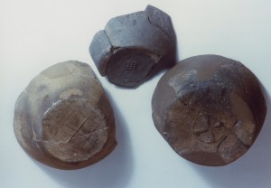 Dna některých nádob měla někdy i keramické značky, které snad sloužily jako podpis jednotlivých výrobců. I v Chotěbuzi můžeme nalézt několik nádob s takovými značkami!