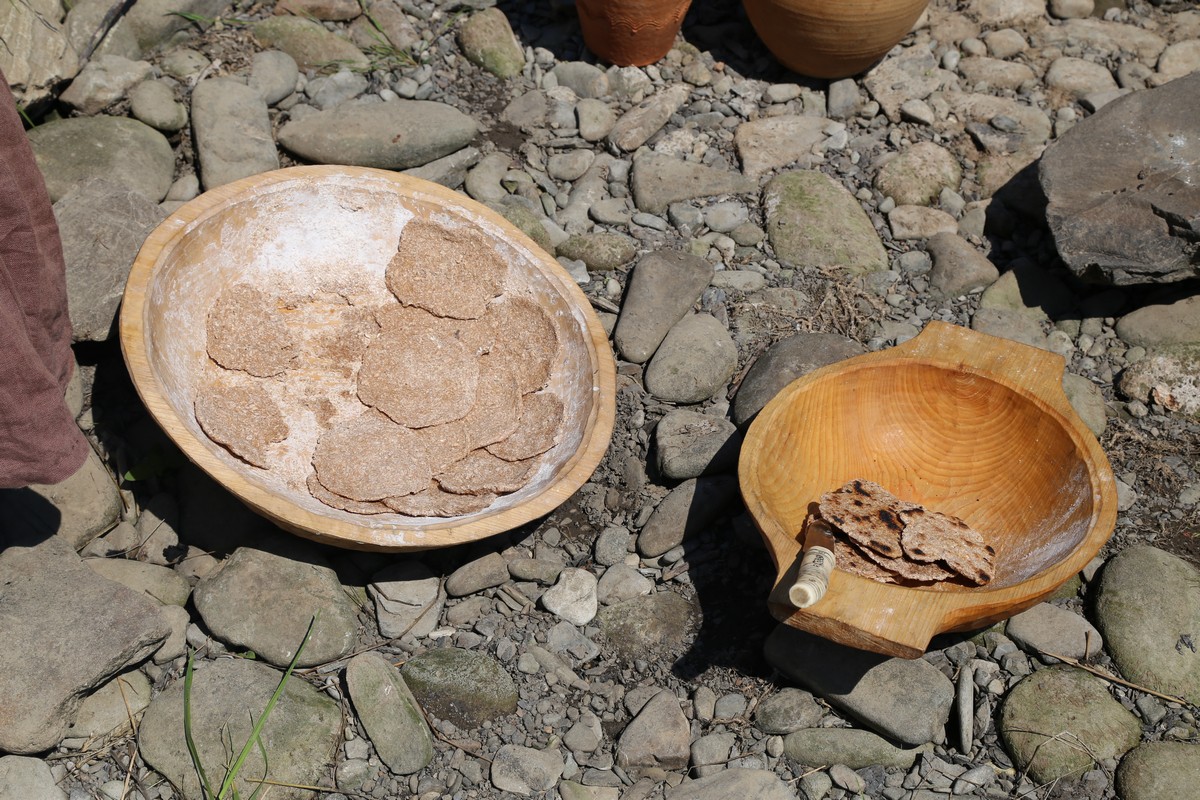 Getreide war eine wichtige Komponente der Ernährung, deswegen musste es richtig verarbeitet und gerieben werden. Heutzutage machen es für uns komplizierte Maschinen, in der Vorgeschichte aber dienten dazu einfache handbetriebene Einrichtungen. Ursprünglich benutzte man die Sattelmühle – eine einfache Steinplatte mit einem oberen bewegten Läufer (auch Reibekugel genannt). Deren Verwendung war jedoch ziemlich mühsam und langwierig. Schlaue Leute, vermutlich die Kelten, haben also kleine Handdrehmühlen erfunden. Das Getreide wird durch ein Loch in den Raum zwischen dem Unterlieger und dem drehenden Läufer geschüttet und an den Rändern fällt dann das gemahlene Mehl aus. Genau solche Handdrehmühlen fand man auch im Burgwall von Chotěbuz und deren Repliken warten auf dich, um ausprobiert zu werden!